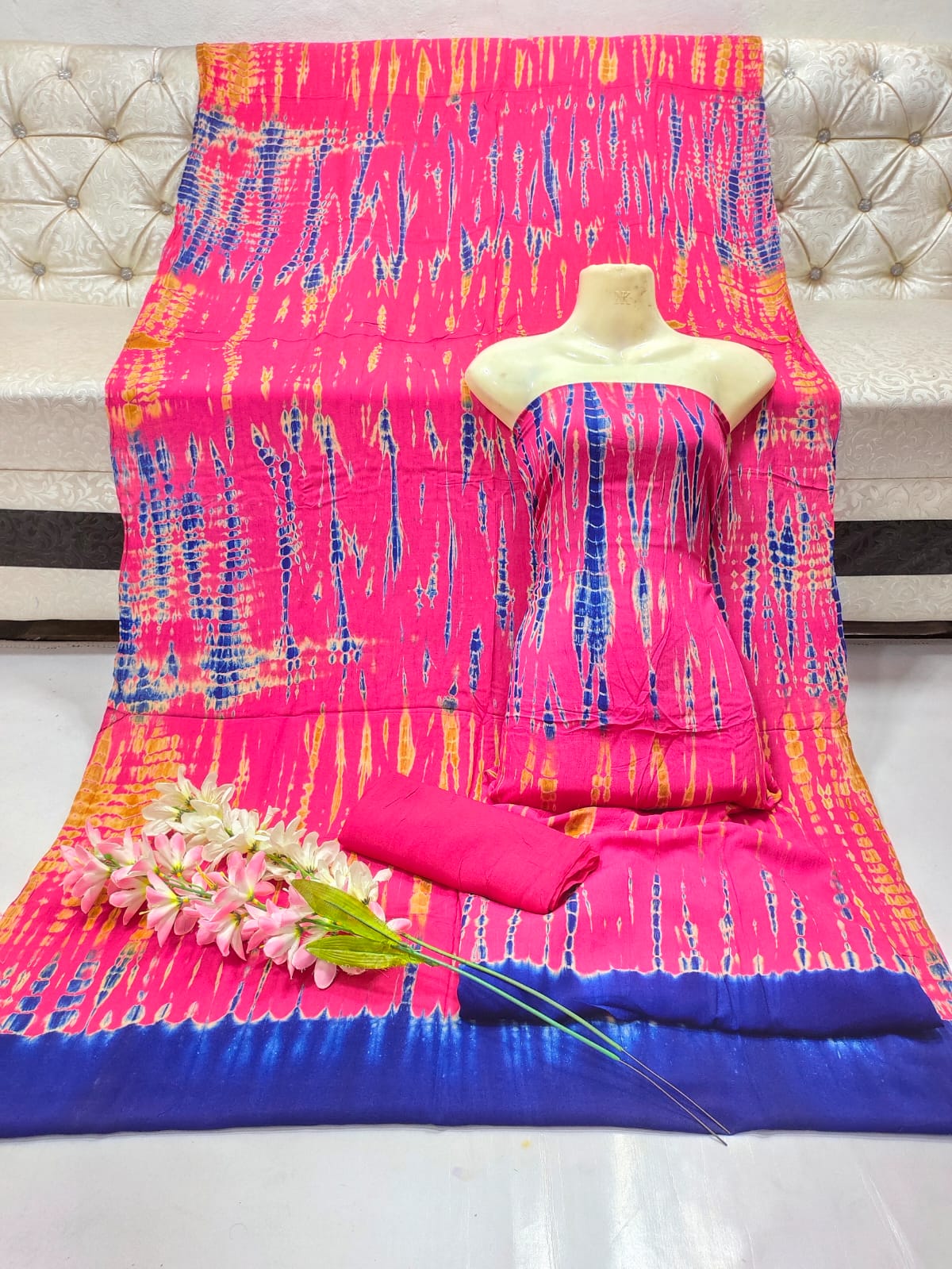 Beautiful Multicolour 3 Piece Tie Dye Dress – Pakistani Fashion