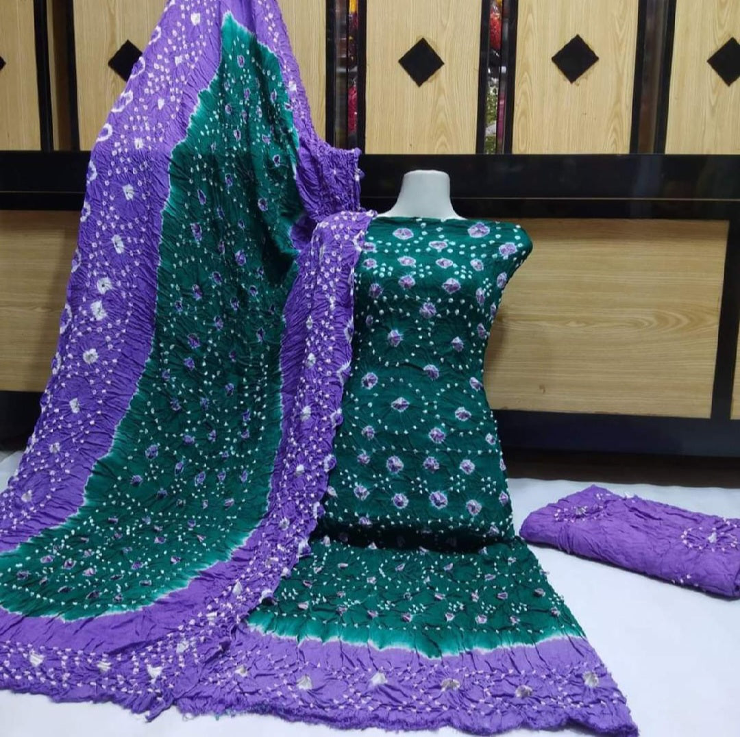 🧵 Made from premium linen fabric, this 3 piece outfit includes a stylish hand-dyed chunri shirt, vibrant dupatta, and a comfortable trouser.